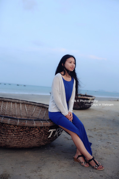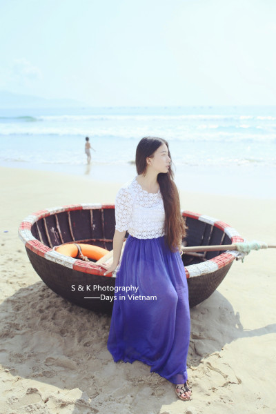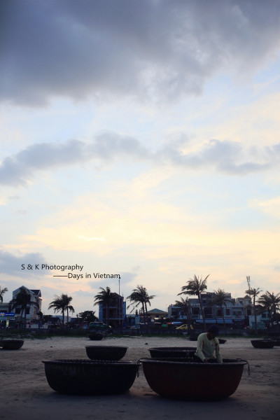 初到海边就忍不住拍了几张,岘港的公共海滩很长一直北上延伸到山茶半岛,沙滩上放着都是这样圆形的小船儿,很是可爱。因为天儿太蓝、海水太清、浪花太美, 走到哪儿喜欢就停下,没有饱和的行程追赶,虽然暴晒,却也骑行的开心自在。