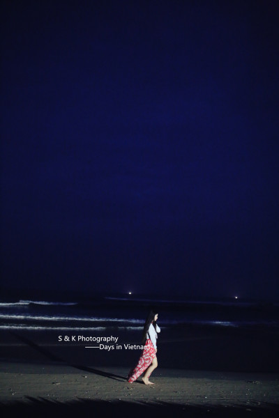 Ken骑着摩托摸索着,希望能找到晚餐落脚之地。后来才知道我们朝南越骑越远,远到偏离了会安的海滩,来到海风猛烈的堤坝,此时的我已是漫天星星。