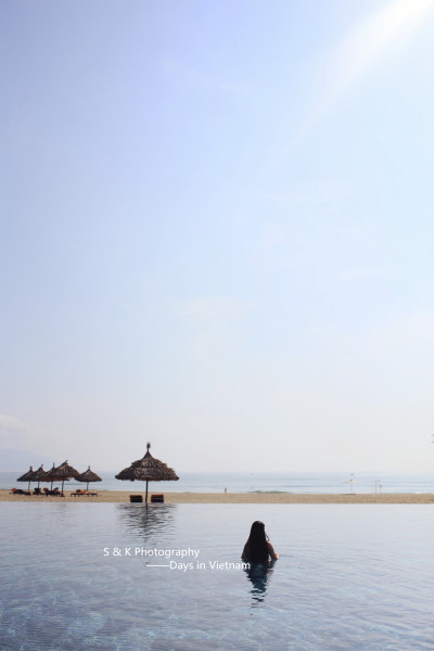 走50米就是海滩,无边泳池很美,酒店环境也美,早餐选择比较多。但是服务不好,入住当晚房卡就坏掉整个来回找了两次前台,很是辛苦。夜间摩托车要转停室内,但服务员不会英文,耗了好一会才在雨天把车停好。另外酒店每天有两班前往会安的免费巴士,酒店在海边外出交通有摩托,没有摩托门口很多的士,也比较方便。