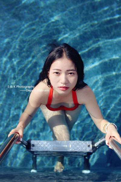 在泳池里玩儿的欢快,Ken先生也拍的欢快,于是他提议要我把头侵在水里拍,当时心里真是一万只小白马在奔腾啊,因为我肯定是侵不下去的,他不相信执念鼓励我,然后,下去了以后,就按照惯例咕噜噜嘴巴鼻子呛了一把,眼泪迷蒙的浮上来,Ken先生为此还很懊悔我的不争气表现,再然后,就没有然后了= =!