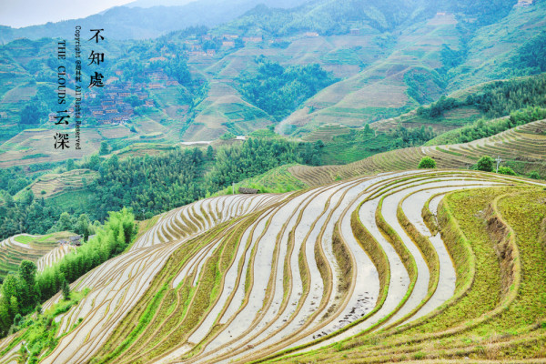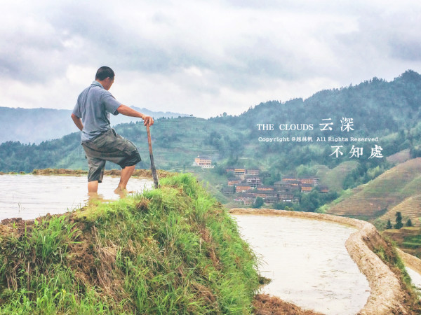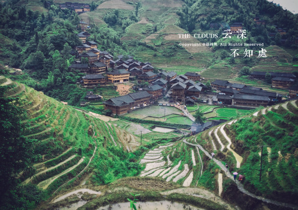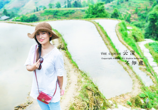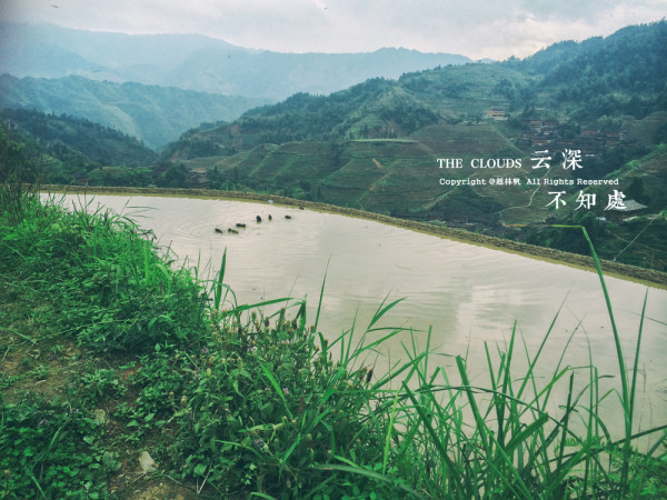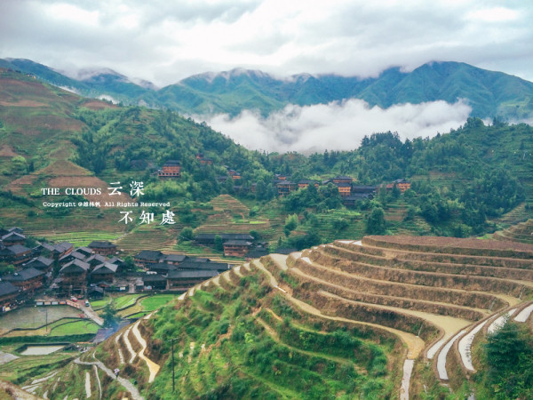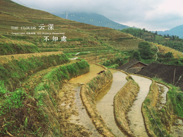 山间夹小溪,起步阶段觉得梯田和我们的山头没什么区别,越往上爬,才知道无限风光在顶峰。不仅梯田里有水灌入,景色别致,更可以一览龙脊全景。