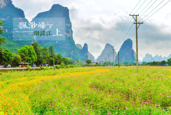 骑行到遇龙河小道和十里画廊的交叉口,在大榕树附近有一片花丛,有点北海道拼布之秋的感觉。