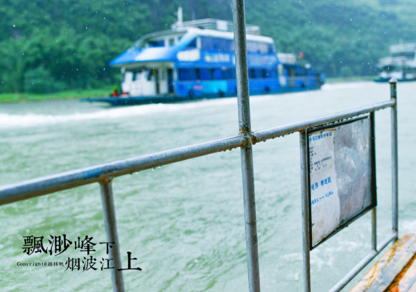 全程大约3个小时,就在为太阳过烈懊恼的同时,船到当中,突然天气阴沉。大喜过望,果然,飘起丝丝雨星。两岸蒙上烟雾色,飘渺如画。