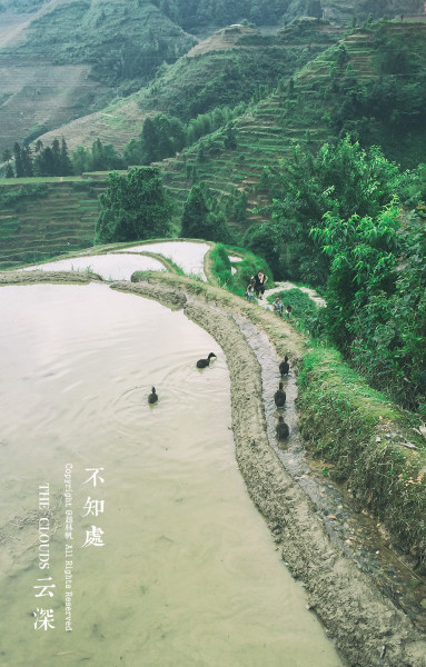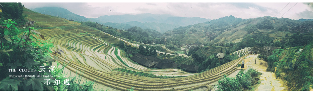 在阳朔到桂林的大巴上预定了去龙脊的车票,一上午就在颠簸路途中度过。到达梯田的停车场——金佛顶缆车的起点处,已是中午。打了电话给客栈老板引路上山。