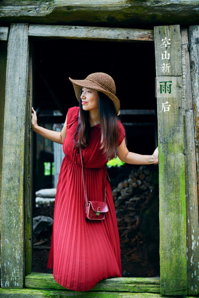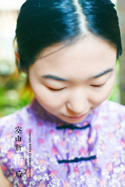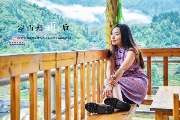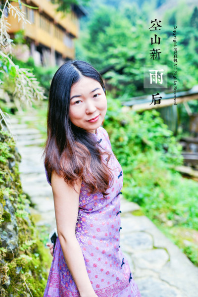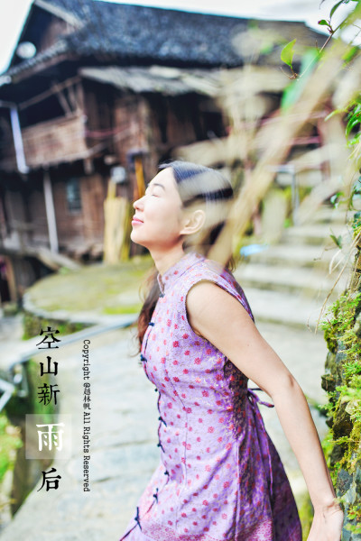 在泰国买的紫色旗袍派上用场,很有古风古韵。