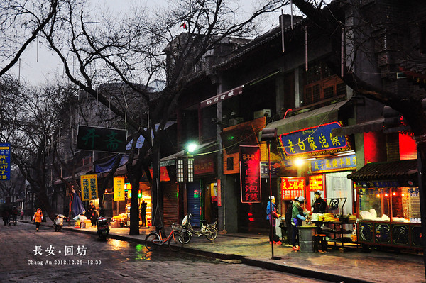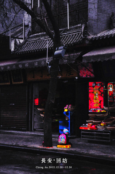 冬日的长安,更显古城的苍凉。大槐树帜列两行,古城墙巍巍凝伫,喝一碗羊汤,啜一口红油辣子,听一句秦腔,热血复活。