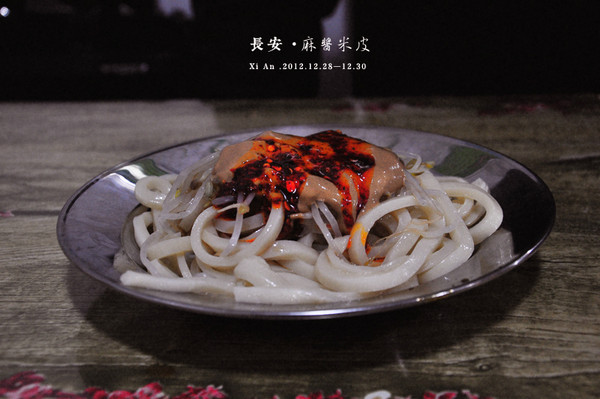 晚上回到居住地附近,品尝正宗的陕西米皮,红油辣子的香味,让人不无想念。