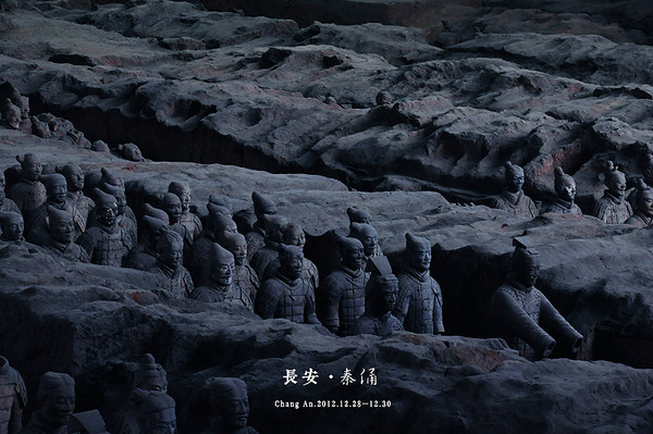 曾听闻好几位中国著名男星的脸面都能在秦俑上找到原型,可见这些东方帝国的威武雄狮典型代表了中国男人的形象。听讲解说,所有制俑的土全部经过炒制而成,所以不生植物。无法想象千年前,全陶绘彩,覆土累木,千人千面,绝无相同,经历漫长时岁不腐的这个地下王国是如何建构的。