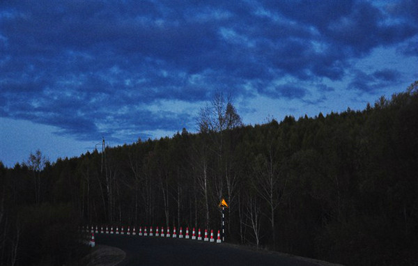 来到附近的扎来诺尔小镇——猛犸象的故乡。已是夜路,路上随处可见风力发电车显得柔美而壮观。