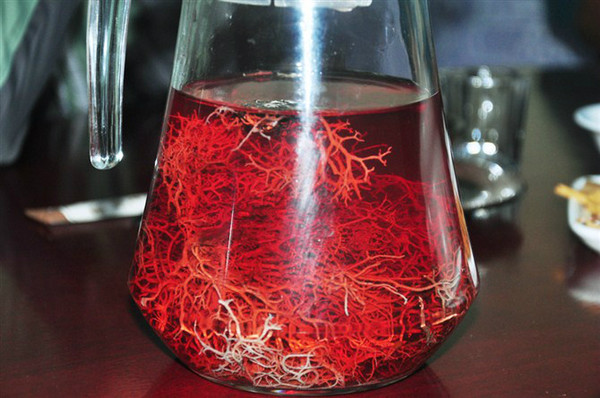 鹿心血草,一种当地植物,泡出的茶水红殷殷的,配上几颗冰糖饮用,苦后回甘。