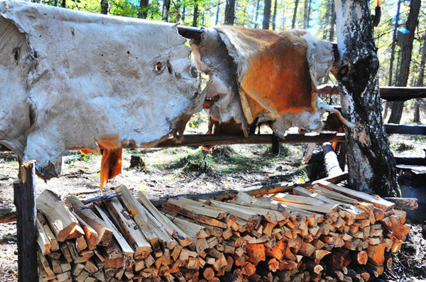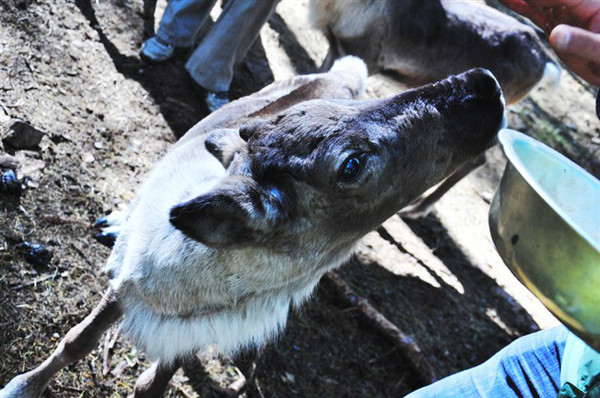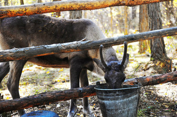 小小睡了个懒觉,早餐完毕后,来到一个很少为外人知的景点——索罗贡养鹿点。这是任何大旅游团都不会涉足的“不毛之地”,包车游的好处恰恰在这里。这是一个驯鹿部落,部落主人是鄂温克族后裔,现在仅剩一千余人。国家对这一民族有保护政策,即使犯了杀人放火的大罪,也只处七年刑罚。而他们的生活方式,真应了张悬那句歌词——纯然原始的粗犷。