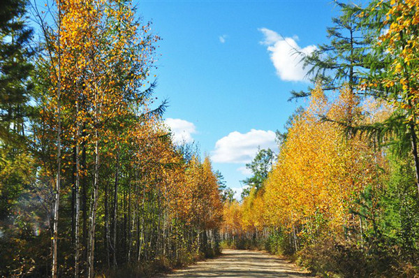 第三日开始告别草原,一路向北,走进兴安岭森林的延伸部分。9月下旬正是最好看的时候,由绿渐黄,红叶烂漫,一路一路的山林,色彩交织。说的没错,来呼伦贝尔,最好的风景,其实在路上。
