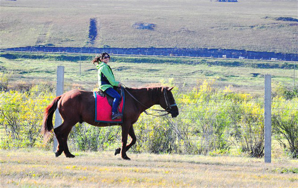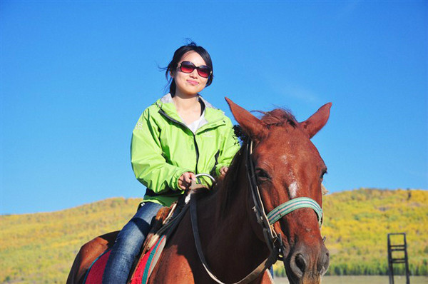 室韦是中俄边境的一处小镇,中俄混血后裔很多。比起恩和也要大上好几圈。来到室韦的一大目的就是骑马,价格也算公道,1分钟1元,骑多久随你心意。我骑的那匹棕马外号“大恐龙”,是全室韦最高大的马,不知道怎么就分给了我这个矮个子。马真是很忠实的动物,听说如果和人达成默契,它会奉命到底,一直跑马肺子炸掉身亡,而从不停脚。“大恐龙”很是听话,不疾不徐,不过奔跑起来,还是把人颠的半死。古代那些信差们,你们都是怎么练就的这一身功夫啊?骑了1小时不到,屁股就抗议不止了。不过,总算体验了一把骑马瘾,尤其暮光西沉,策马奔腾,奔跑在这样一个神话一样的地界,夫复何求啊?简直想高歌啊~啊~啊