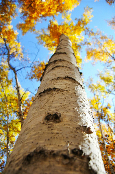 桦树和杨树有些许相像,都是笔直高大。白桦的树皮则更洁净,如同涂过石灰。也有眼睛似的斑纹,怔怔的流泪。
