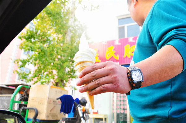 出了根河湿地,巴哥带我们品尝了“全呼伦贝尔最好吃的冰激凌”。鲜奶打制,跟我们日常吃到的那些麦当劳甜筒味道真的有差别。据说,老板仅仅卖冰激凌一天就有2000元的收入。