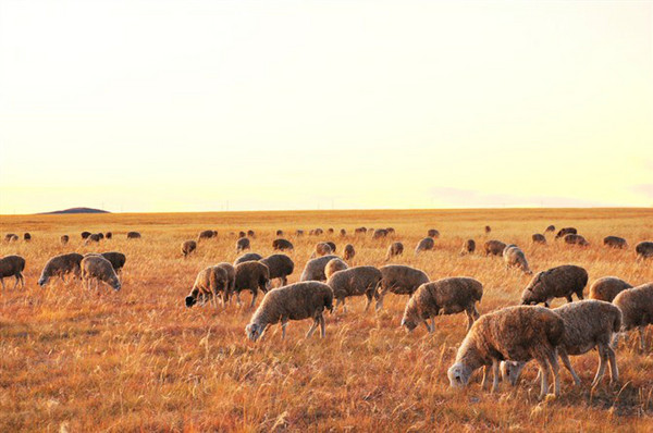 夕阳中的羊群。