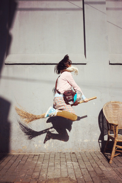 当我二货般拿起扫帚欢乐地奔阿跳啊时,周遭的路人应该瞟了一百个白眼了吧。。