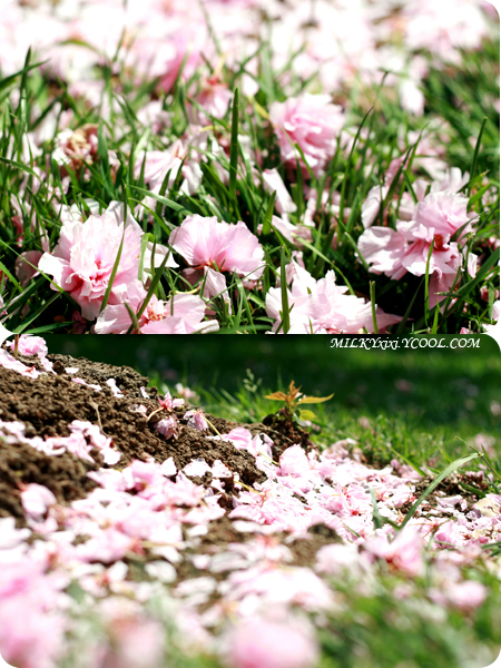 2009年。抓住樱花的小尾巴,满地落樱。