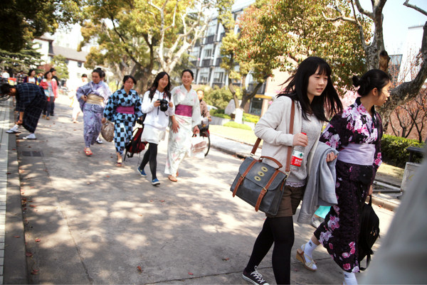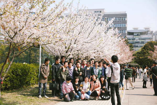 在学校赤峰路南门进校,一整条路两边种满了樱花树,人称樱花大道。虽然从规模上来说不及大名鼎鼎的武汉大学,但在校园里能见到这一整片的粉色云团,比起公园总更有清新味道哟。