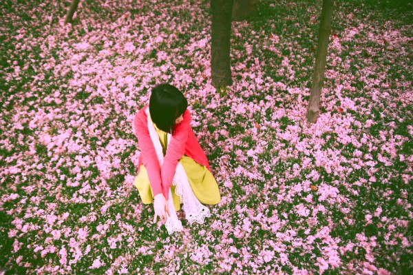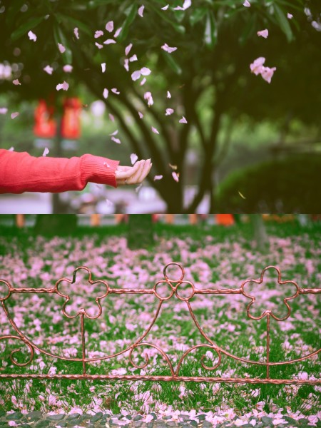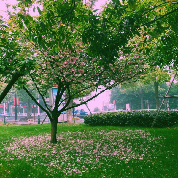 其实绍兴街头的绿化带里种着不少樱花树,走两步就一株。而晚樱都已经碎了满地,成为化作春泥前最后一道风景。
