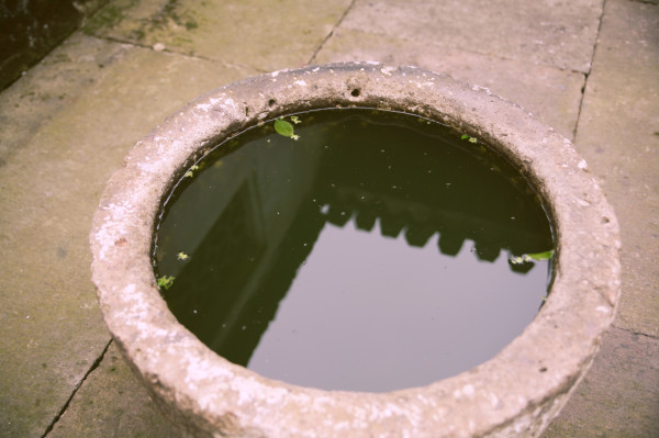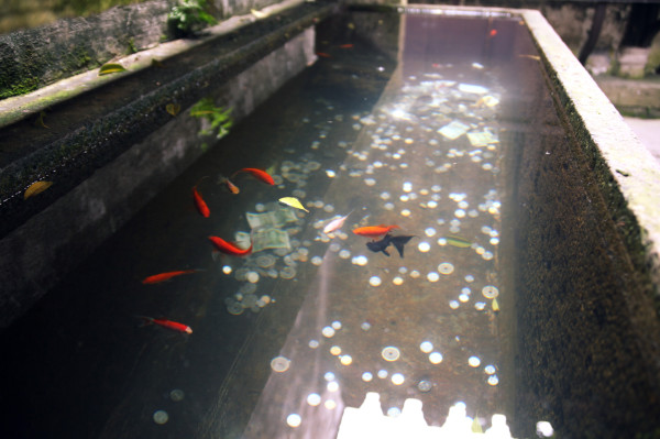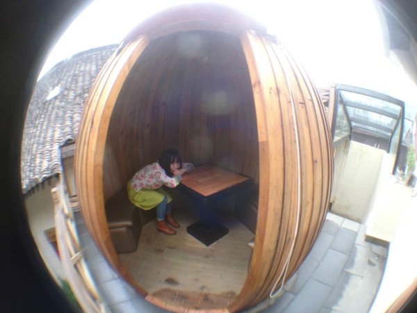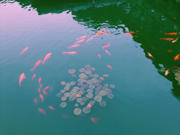每个房间都是挤满了团队游客,只有院子里小水缸里,鱼儿安安静静游