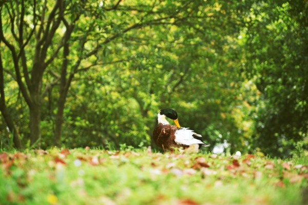 然后很莫名地在树林里碰到一只正在用特别优雅的姿势梳妆的。。鸭子。。。