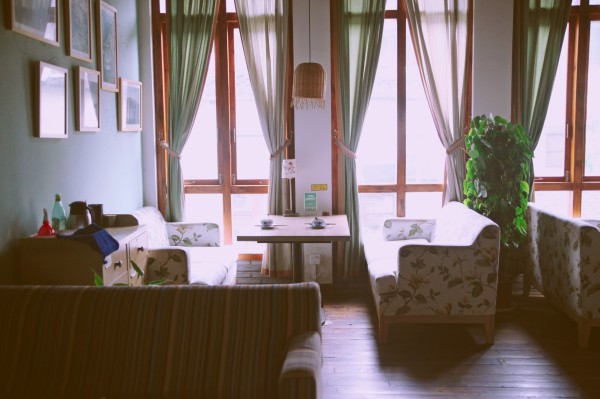 作为一家咖啡馆兼茶室兼民宿,位于龙山路城市广场附近,临河而建,地理位置得天独厚
