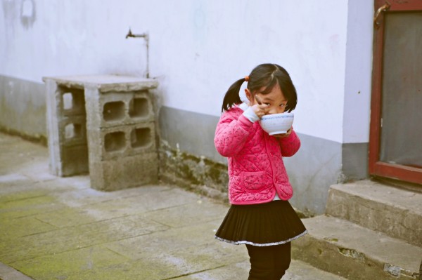 闲逛遇到小朋友在路上吃饭== ,一边把脸害羞滴埋进碗里,一边又好气地用眼睛往我这里一直瞟一直瞟,真让人忍俊不禁