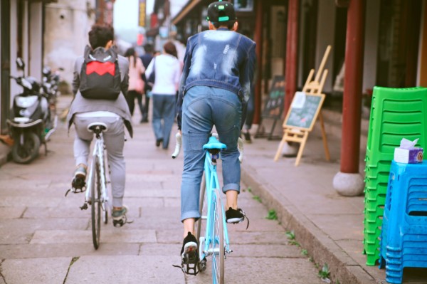 时尚的少年穿梭在古街。。