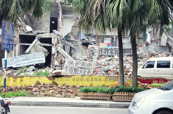 路边的钉子户,在阳朔最热闹的西街也有拉横幅静坐的