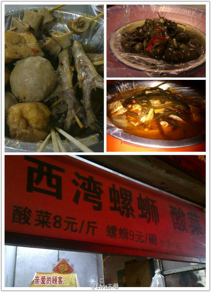 这条不知道是不是叫微笑堂,攻略上写真KFC旁边的小路进去,很多家吃小吃的,包括进去后左转里有家【王婆卤味】鸭脖,鸭舌,鸭胗,贡丸,辣的挺爽,又去吃了西湾螺丝粉,螺丝粉里没有螺丝,要分开买,嘴巴吃到肿,肿了消,消了又吃肿~~~~~