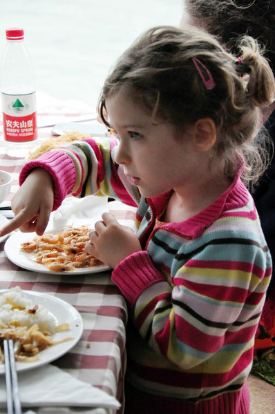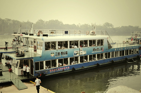 订的船票有车子到酒店接去竹江码头,9:30开船,我们订的是环保船,也叫外宾船,和豪华船区别就是自助餐和桌餐,多了大概20块钱,果断选择了环保船。同桌的有个外形很思密达的GG,青又果断搭讪了下,果然是从首尔来的哦吧。
