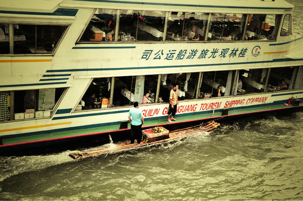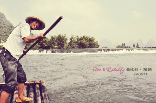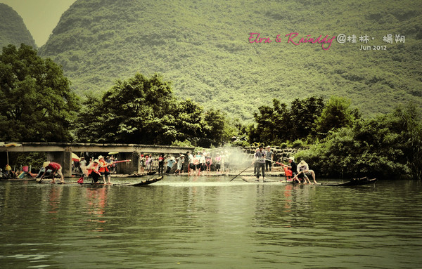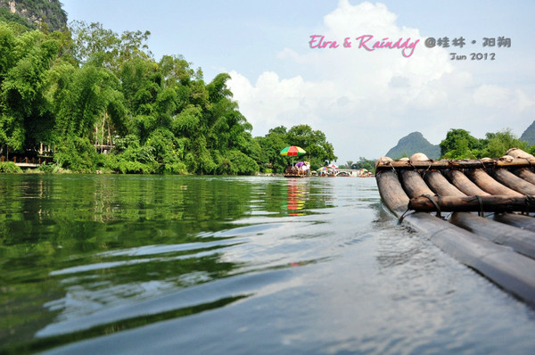 出行前在淘宝小莫家【http://store.taobao.com/shop/view_shop.htm?user_number_id=216987392】订了竹筏漂流的票,一开始订的是兴坪-杨堤的电动竹筏,因为看着竹筏比较大,有顶蓬,有安全感。但是因为第二天从桂林到阳朔的时候就做了大船游了漓江,所以重复了,果断决定更换行程,改漂遇龙河,很庆幸自己做的这个决定,风景实在差太多了,不漂遇龙河就白来了阳朔。