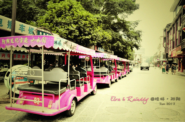 阳朔的公交车,,就是这种敞篷车,,很奇怪,他们那的店铺都没有门牌号,真不知道快递是怎么送件的