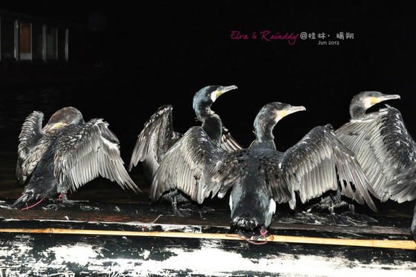 这就是晚上坐船看的鸬鹚捕鱼,提醒,一定要穿长裤长袖啊,也许因为我是O型血,再加上拍夜间照的时候纹丝不动,腿上手上一起被咬了70多个包,,密集物了啊