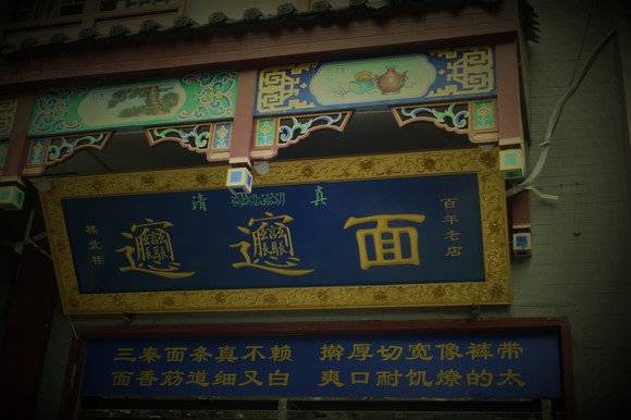 碑林出来,下起了雨,看着就在边上的南城墙,也勾起不了赏景的欲望。不能一饱眼福,那就去一饱口福吧。回民街位于钟楼以西,穿过鼓楼即是,如今便是饮食汇集之地,在这里吃了biang biang 面,这对于南方不爱吃面的人来说,吃的是它的“字”,因为这"biang” 字多达56画,是中国汉字之最——笔画最多的字。不愧于门庭若市的面馆,这家的biang biang面的滋味也是非常棒的。