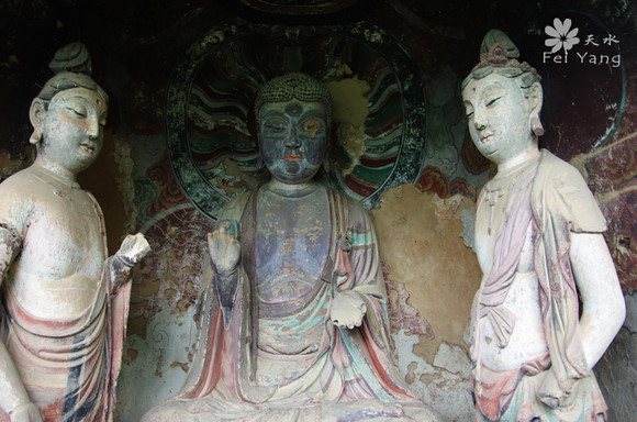 天水闻名遐迩的是麦积山石窟,作为中国四大石窟(莫高窟、龙门石窟、云冈石窟、麦积山石窟)之一的麦积山石窟,因其形“如农家积麦之状”而得名,周围群峰怀抱,麦积一秀崛起。