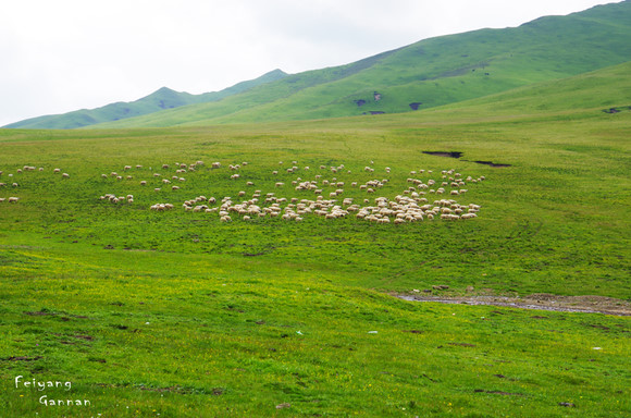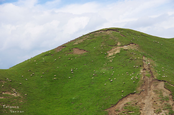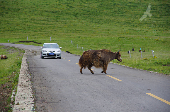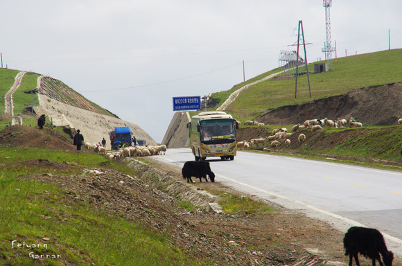尕海不免让人失望,不过在旅途中让人常常兴奋的却是那些在草原很平常的牛羊。不时从路旁穿过的牛羊倒是比交警管用,让车辆慢行还没有脾气。
