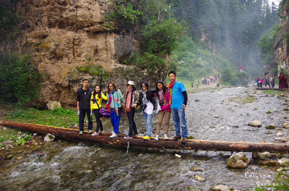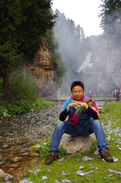 白龙江水,温柔绵长,看多了宗教的建筑后,来这里感受一下自然。这里的江水的感觉很像是长白山大峡谷,我在这里摆了和长白山同样的姿势,唯一所不同的是,我身边撒下的风马。风马就是四四方方印有图案的符纸,是福运吉祥的象征,像《转山》中男主角在山上撒风马一样,藏族人们往往在经过大小神山圣湖,甚至是这样的河流都会撒风马。