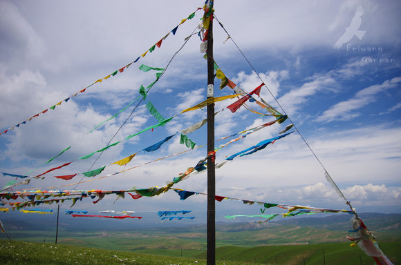 在夏河的草原,飘动的经幡永远立于天空与草原之间,这两个与牧民生命息息相关的元素,每天得到这样虔诚的诵读和祝福。