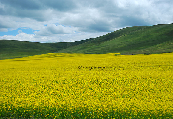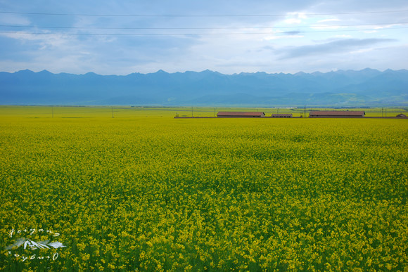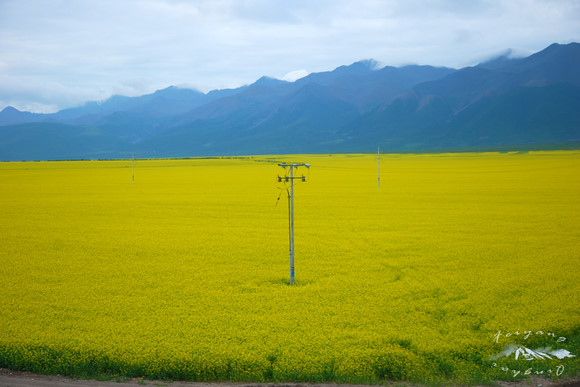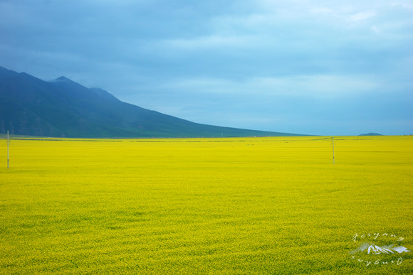 虽然七月是油菜花最旺盛的季节,但这同时也是青海的雨季,渐渐西沉的太阳总是掩藏在云里,然而是一阵风吹开了云的一朵发髻,露出一点缝隙,阳光洒了进来,顷刻间,被阳光照着的油菜花黄的耀眼、夺目。门源的油菜花我经常用“一整屏”来形容,因为往往是遍野的黄色一直连绵到天际,或者是消失在远处的群山脚下。