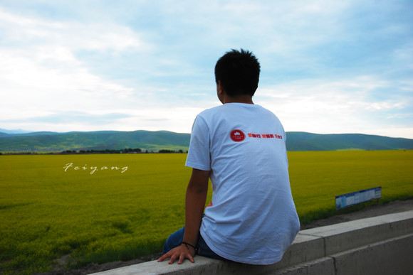 这是铁路上的一个桥上,就坐在这里看着无尽的花海 2012/7/17 17:30