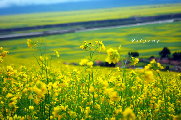 日渐西沉,再看一眼漫延的菜花田,这满布的黄色画卷,让我们贪心的还想再看一眼。再看一眼,直到日已西沉,直到漫延到天际,直到闭上眼回忆,直到梦中的想起,直到……