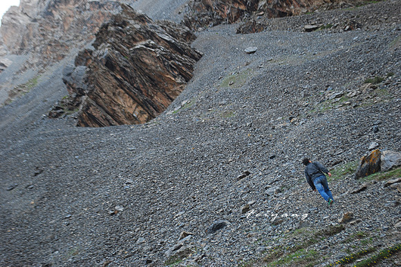 小梁,正往山上走着,高海拔使得爬山变得吃力的多 2012/7/18 13:00