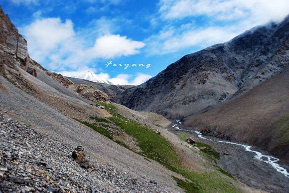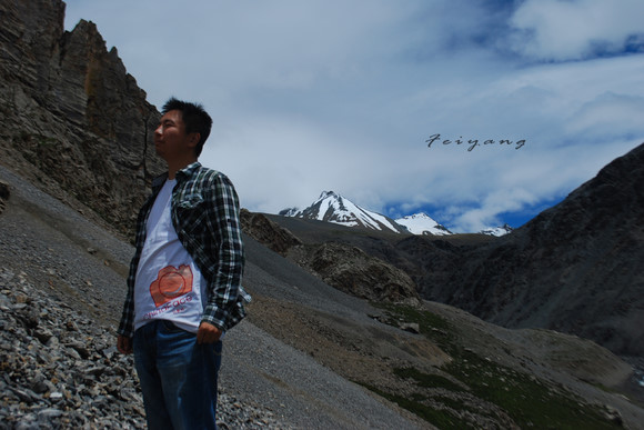 苍白的天空开始变得蔚蓝,雪山冰激凌在蓝色的背景下,发出白色的哈气。为什么在这一刻会显得如此激动,那是因为如此壮美的风景,还是因为先失望再惊叹的心情? 午后的阳光带来温度,即使是在雪山下,也抗拒不了在这里脱了上衣好好放纵一番,还是那句呐喊:“雪山,好美啊!”