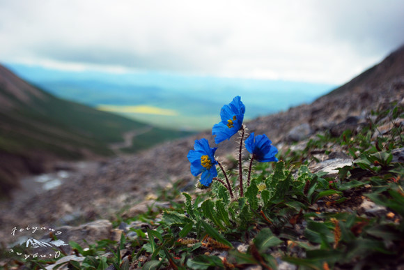 岗什卡雪山下,天气就这般的变幻莫测着,它并未发出召唤,却被我们意外的遇见,就像邂逅这朵在高原雪甸上盛开的小蓝花一样。